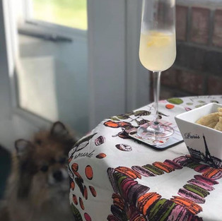 Of course, you can't forget the drinks! Seeing as how it was a French-inspired weekend, we had to have French wine. To start off the weekend, we toasted with Garish with Lemon's recipe for Elderflower French 75 cocktail. Luckily, our local liquor store had mini bottles of St. Germain. To begin the weekend we enjoyed our cocktail in our screened in patio while listening to French Music.